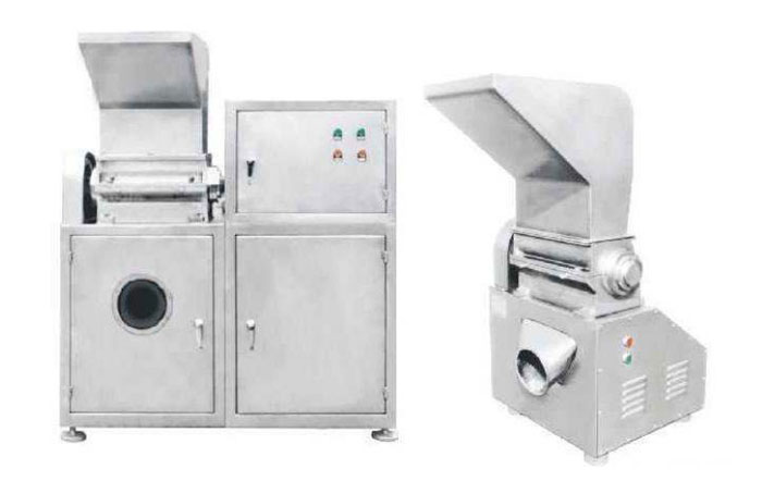 工作原理:物料由進(jìn)料斗送進(jìn)粉碎室,經(jīng)刀刃和刀挫的沖擊,旋轉(zhuǎn)刀和固定刀同時剪切粉碎,由于受到旋轉(zhuǎn)離心力的作用,物料自動從出口處流出。