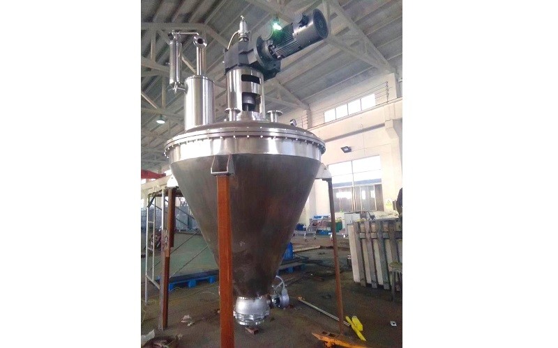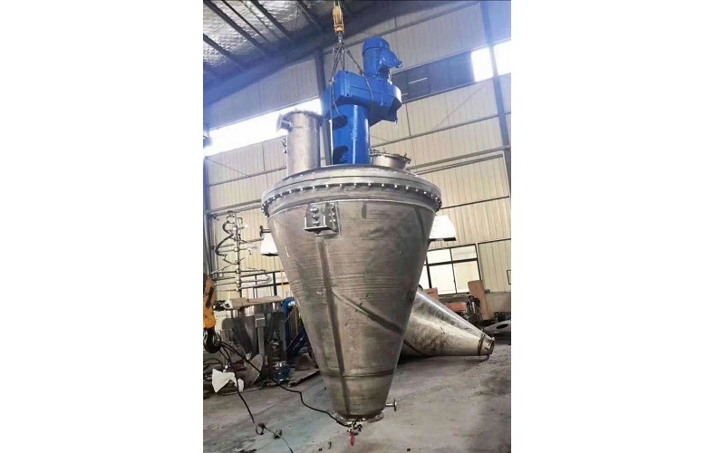 本機由電機、減速機、機架、機械密封、空心雙螺帶攪拌器、帶夾套加熱的錐型筒體和卸料閥等部件組成。