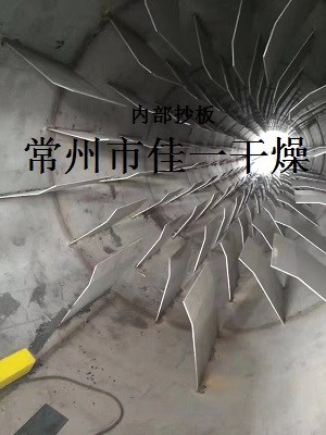 濕物料從干燥機一端投入后,在內筒均布的抄板器翻動下,物料在干燥器內均勻分布與分散,并與并流(逆流)的熱空氣充分接觸,加快了干燥傳熱,傳至推動力。在干燥過程中,物料在帶有傾斜度的抄板和熱氣流的作用下,可調控地運動至干燥機另一段星形卸料閥排出成品。